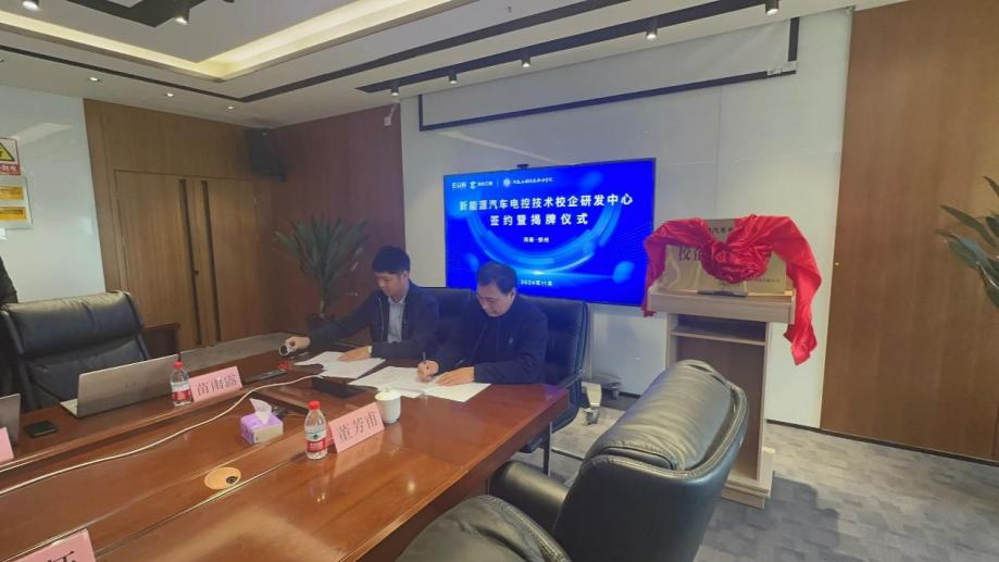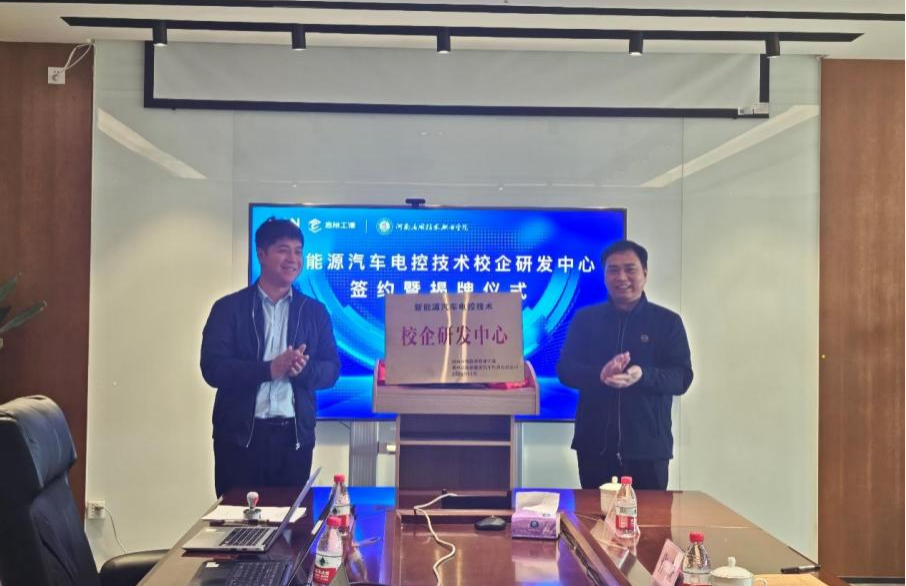 在热烈而融洽的氛围中,仵征副院长与史龙飞经理郑重举行了校企合作签约仪式,双方在协议书上落笔签字,随后共同为“新能源汽车电控技术校企研发中心”揭牌。这一签约与揭牌,标志着双方合作正式落地生根,将在人才联合培养、实习实训基地共建、技术协同创新、课程体系开发等多层面展开深度、长效合作,学校与企业共同定制培养专业人才,企业为学生提供一线实践场景与就业岗位,实现教育链、人才链与产业链的有机衔接。
