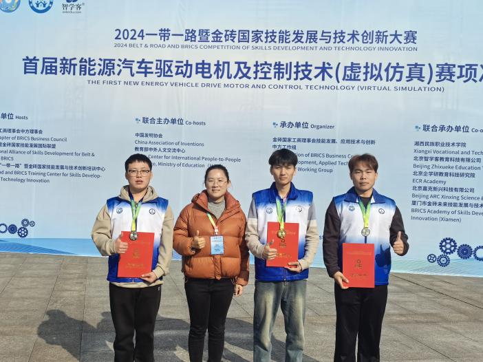 12月1日,2024一带一路暨金砖国家技能发展与技术创新大赛首届新能源汽车驱动电机及控制技术(虚拟仿真)赛项决赛落下帷幕,304永利集团官网入口的师生团队凭借扎实的专业技能和出色的赛场表现,在全国119支参赛队伍中脱颖而出,成功斩获一等奖一项,二等奖两项的优异成绩。