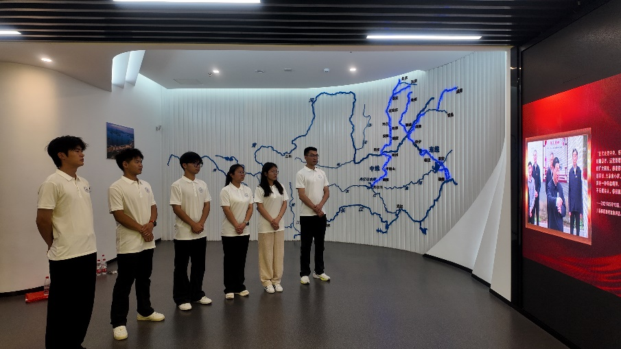 7月1日,304永利集团官网入口“智行先锋”社会实践分队七名成员走进焦作国家方志馆(南水北调分馆)红色教育基地,追寻南水北调精神密码,在红色教育基地感悟初心使命,在南水北调工程的历史脉络中解码“国家工程”背后的精神力量与科技智慧。