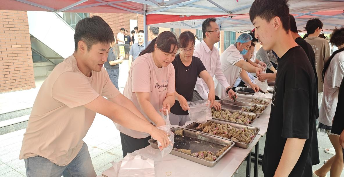 随后,老师们将精心准备的粽子送到同学们手中。粽子飘香,情谊更浓,拿到粽子的同学们脸上洋溢着喜悦的笑容,纷纷向老师表达感谢。一位留校同学激动地说道:“虽然端午节不能回家与家人团聚,但在学校能收到老师们送来的粽子,感觉特别温暖,就像在家一样。”
