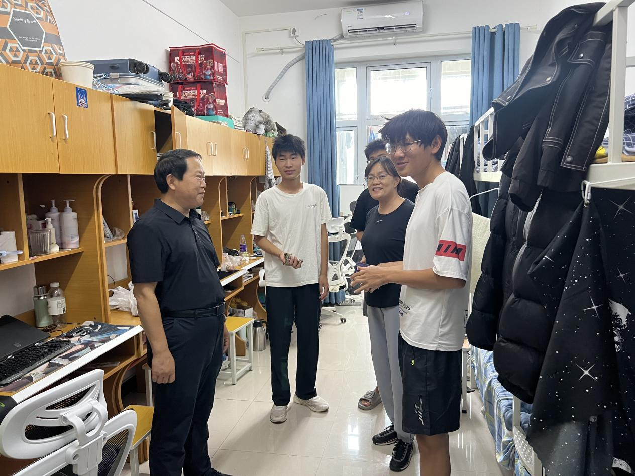 常新中一行首先来到学生宿舍,与留校学生进行了面对面的交流。常新中仔细询问同学们留校的原因,了解他们近期的学习计划和生活状况,并鼓励大家合理安排作息时间,在努力学习的同时,也要注意劳逸结合,保持良好的身心状态。